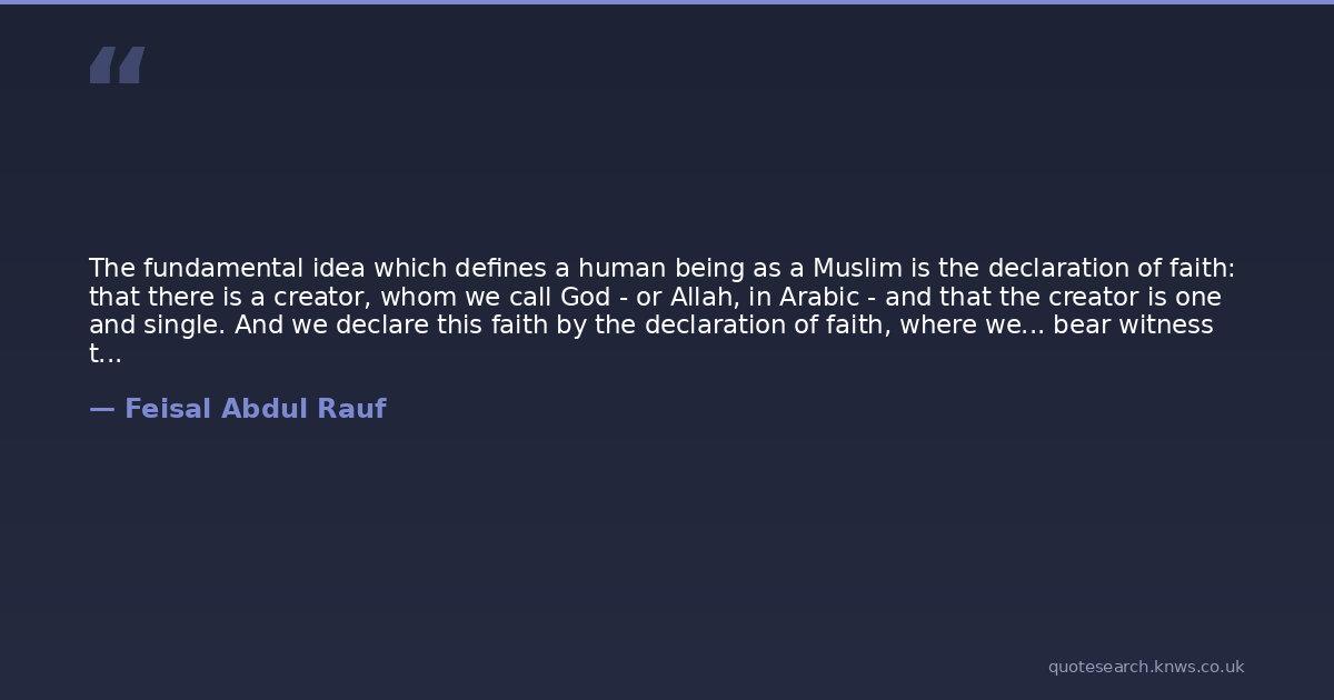 The fundamental idea which defines a human being as a Muslim is the declaration of faith: that there is a creator, whom we call God - or Allah, in Arabic - and that the creator is one and single. And we declare this faith by the declaration of faith, where we... bear witness that there is no God but God.