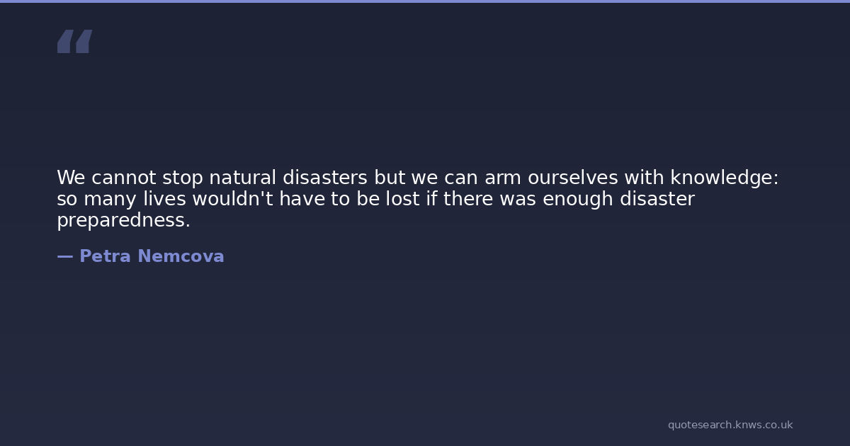 We cannot stop natural disasters but we can arm ourselves with knowledge: so many lives wouldn't have to be lost if there was enough disaster preparedness.