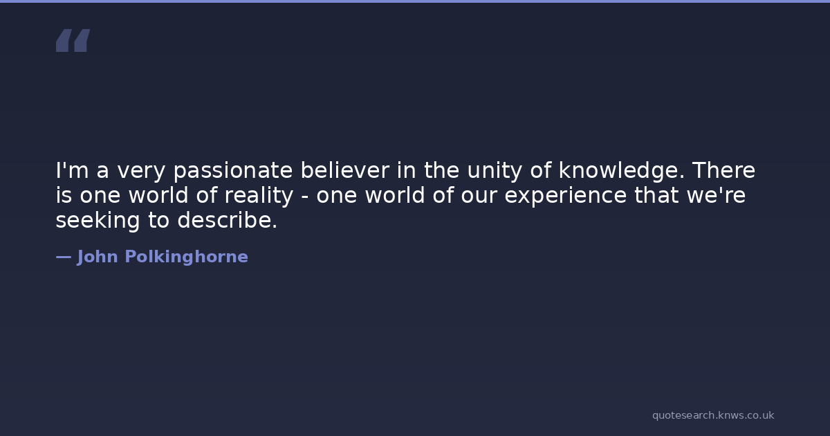 I'm a very passionate believer in the unity of knowledge. There is one world of reality - one world of our experience that we're seeking to describe.