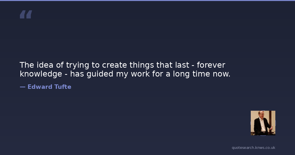 The idea of trying to create things that last - forever knowledge - has guided my work for a long time now.