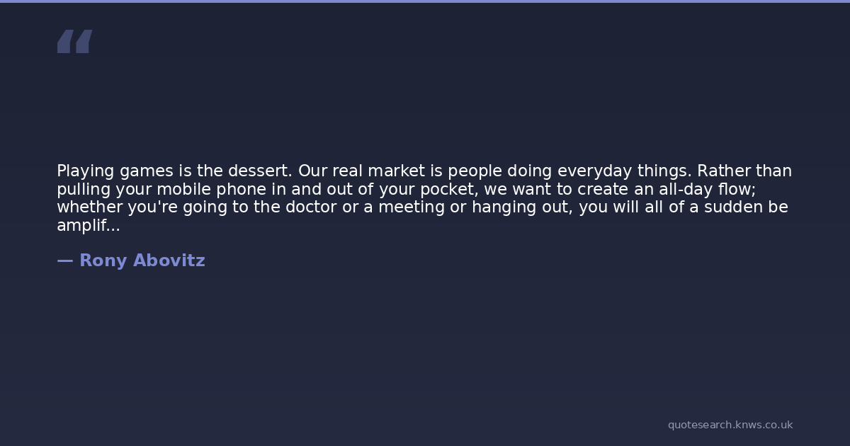 Playing games is the dessert. Our real market is people doing everyday things. Rather than pulling your mobile phone in and out of your pocket, we want to create an all-day flow; whether you're going to the doctor or a meeting or hanging out, you will all of a sudden be amplified by the collective knowledge that is on the web.