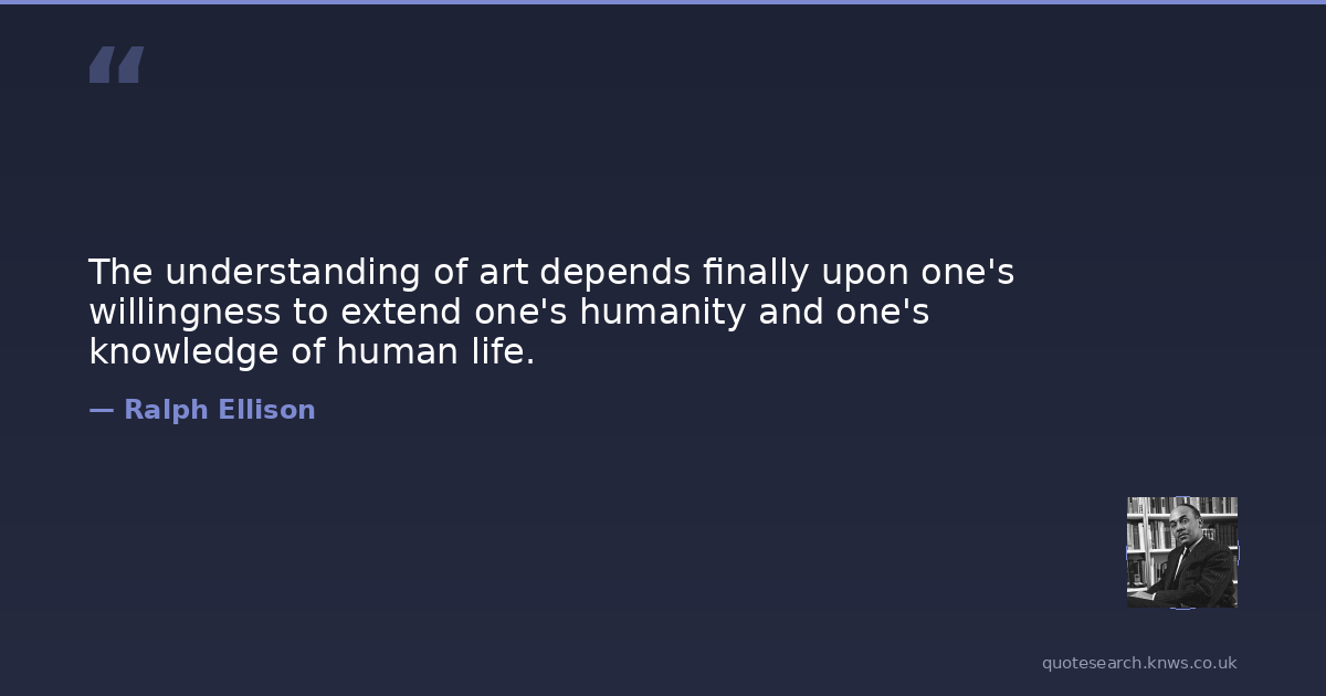 The understanding of art depends finally upon one's willingness to extend one's humanity and one's knowledge of human life.
