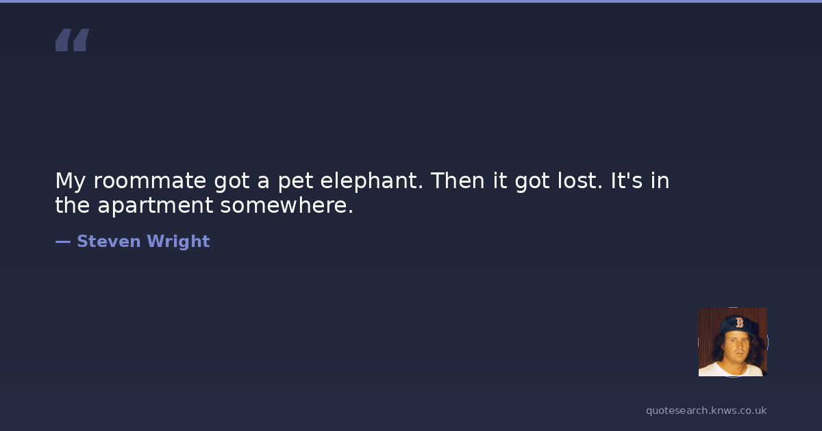 Steven Wright was a contemporary American comedian. Steven Alexander Wright is an American stand-up comedian, actor, writer and film producer. He is known for his distinctive lethargic voice and slow, deadpan delivery of ironic, philosophical and sometimes nonsensical jokes, paraprosdokians, non sequiturs, anti-humor, and one-liners with contrived situations. Read more on Wikipedia →