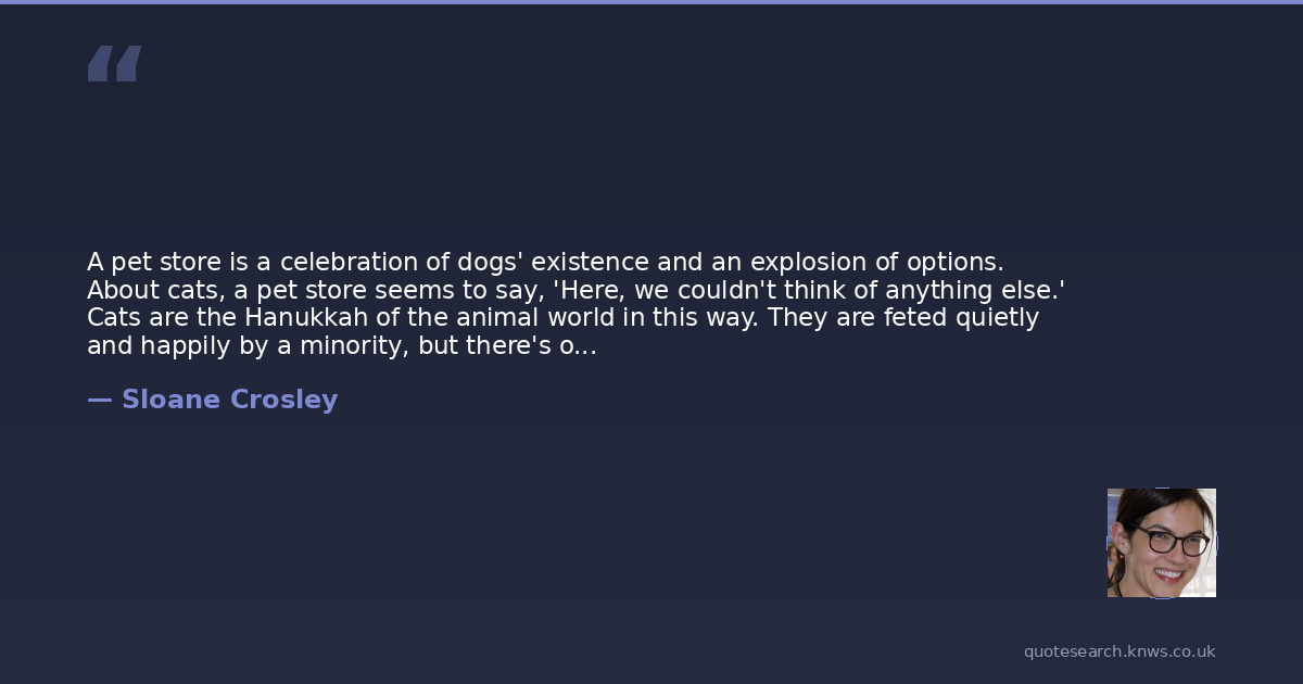 A pet store is a celebration of dogs' existence and an explosion of options. About cats, a pet store seems to say, 'Here, we couldn't think of anything else.' Cats are the Hanukkah of the animal world in this way. They are feted quietly and happily by a minority, but there's only so much hoopla applicable to them.