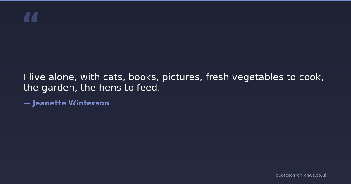 I live alone, with cats, books, pictures, fresh vegetables to cook, the garden, the hens to feed.