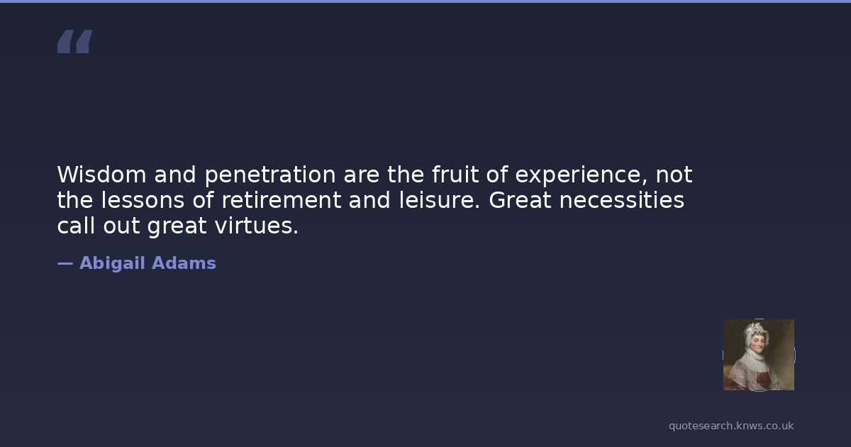 Wisdom and penetration are the fruit of experience, not the lessons of retirement and leisure. Great necessities call out great virtues.