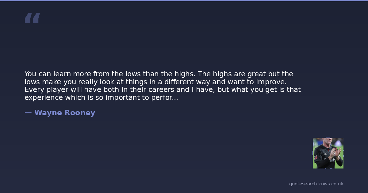 You can learn more from the lows than the highs. The highs are great but the lows make you really look at things in a different way and want to improve. Every player will have both in their careers and I have, but what you get is that experience which is so important to perform at your best.
