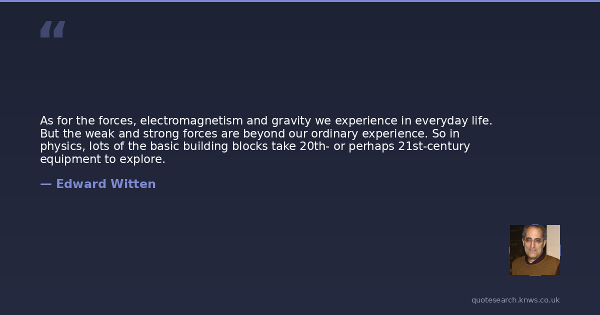 As for the forces, electromagnetism and gravity we experience in everyday life. But the weak and strong forces are beyond our ordinary experience. So in physics, lots of the basic building blocks take 20th- or perhaps 21st-century equipment to explore.