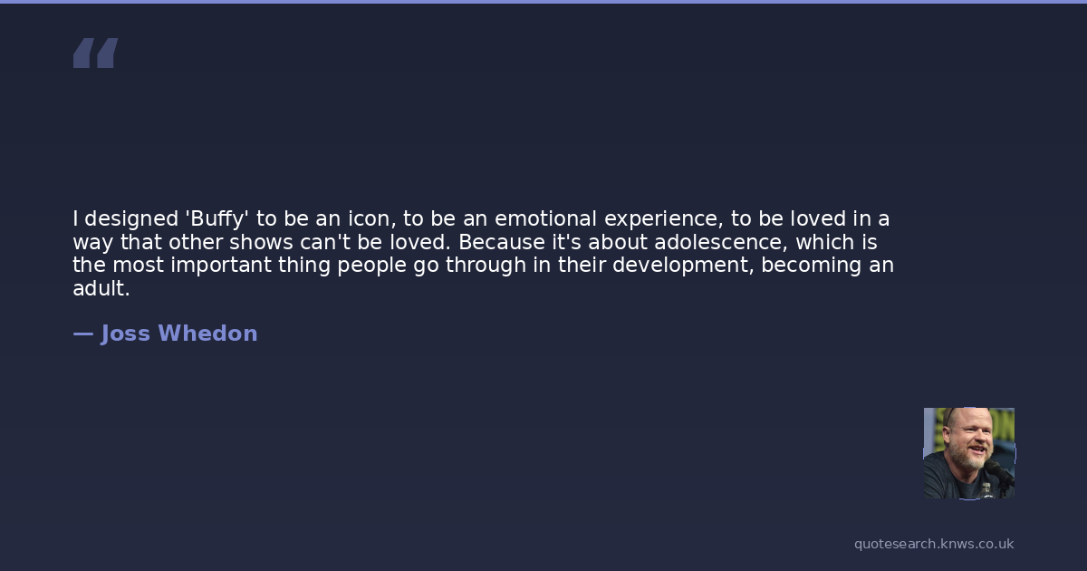 I designed 'Buffy' to be an icon, to be an emotional experience, to be loved in a way that other shows can't be loved. Because it's about adolescence, which is the most important thing people go through in their development, becoming an adult.