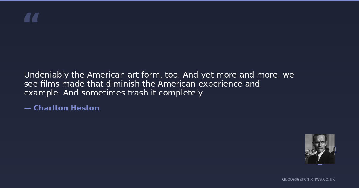Undeniably the American art form, too. And yet more and more, we see films made that diminish the American experience and example. And sometimes trash it completely.