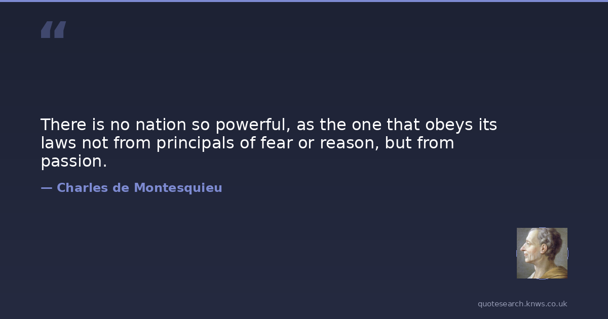 There is no nation so powerful, as the one that obeys its laws not from principals of fear or reason, but from passion.
