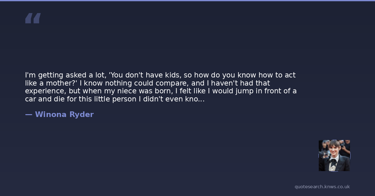 I'm getting asked a lot, 'You don't have kids, so how do you know how to act like a mother?' I know nothing could compare, and I haven't had that experience, but when my niece was born, I felt like I would jump in front of a car and die for this little person I didn't even know yet.