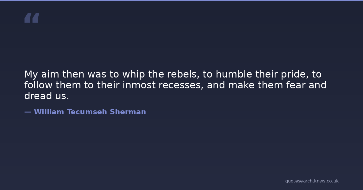 My aim then was to whip the rebels, to humble their pride, to follow them to their inmost recesses, and make them fear and dread us.