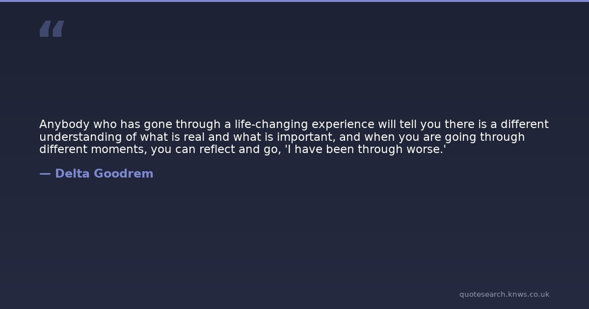 Anybody who has gone through a life-changing experience will tell you there is a different understanding of what is real and what is important, and when you are going through different moments, you can reflect and go, 'I have been through worse.'