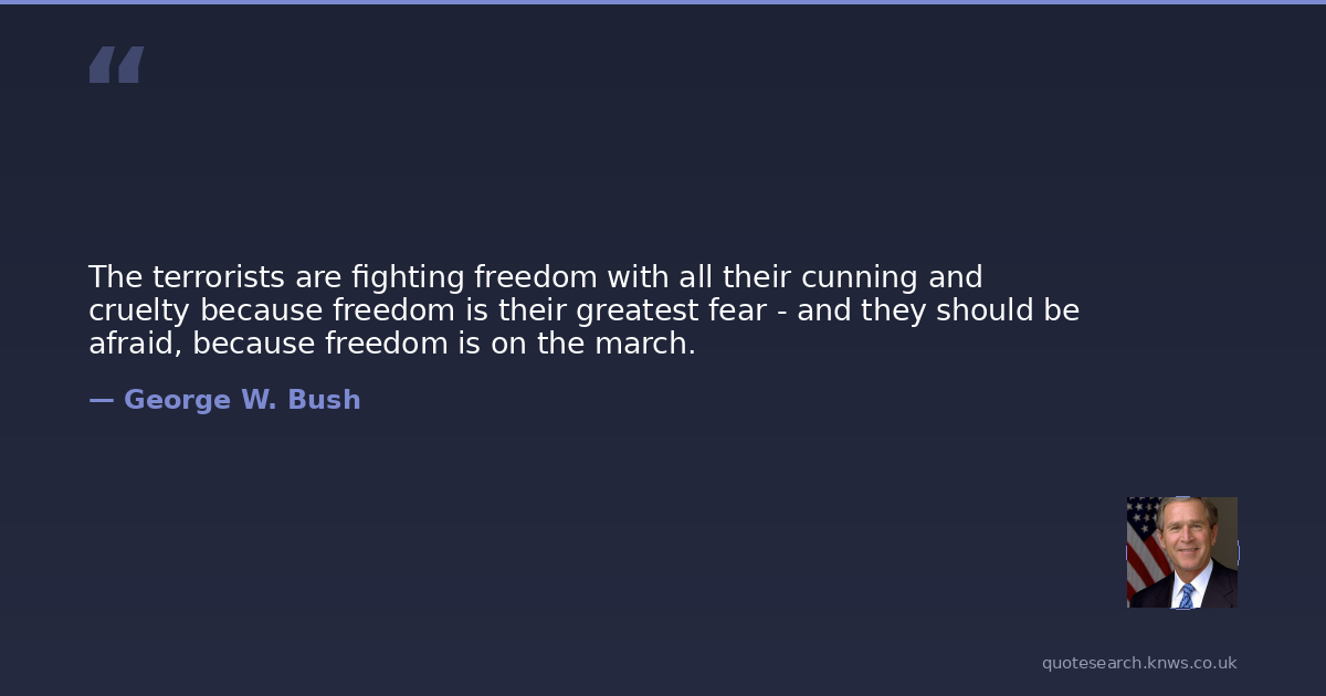 The terrorists are fighting freedom with all their cunning and cruelty because freedom is their greatest fear - and they should be afraid, because freedom is on the march.