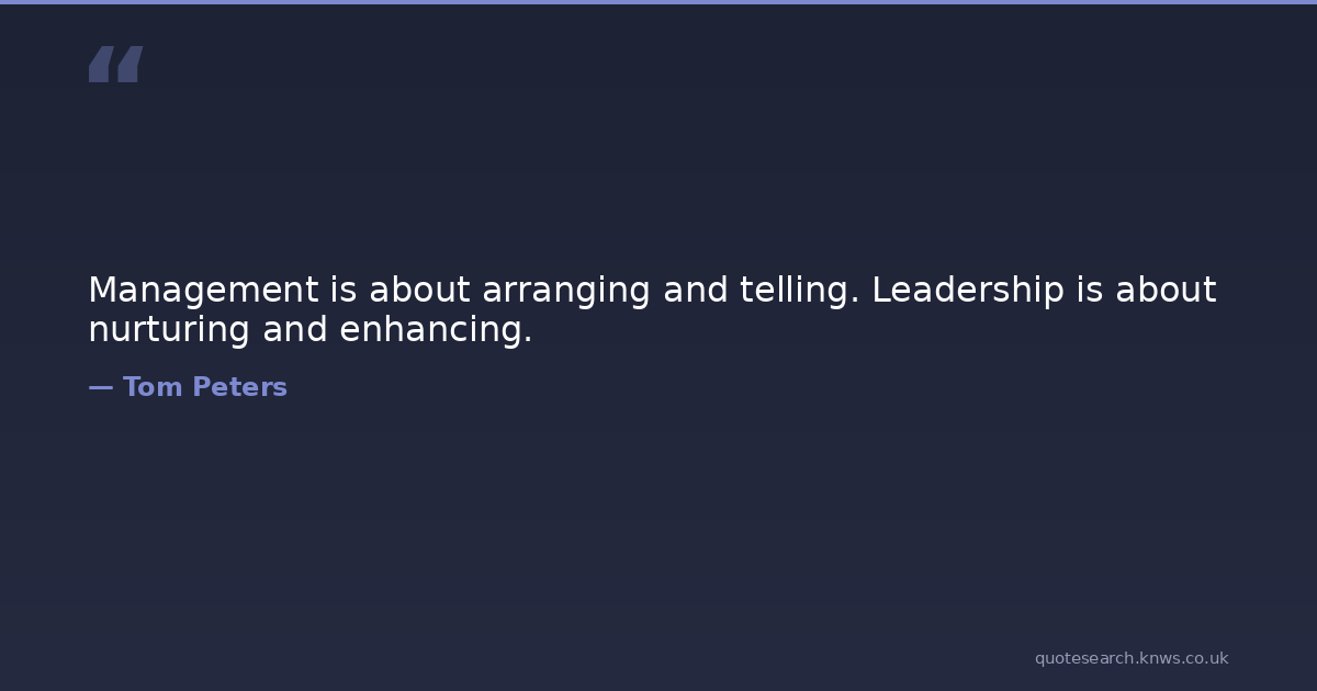 Management is about arranging and telling. Leadership is about nurturing and enhancing.