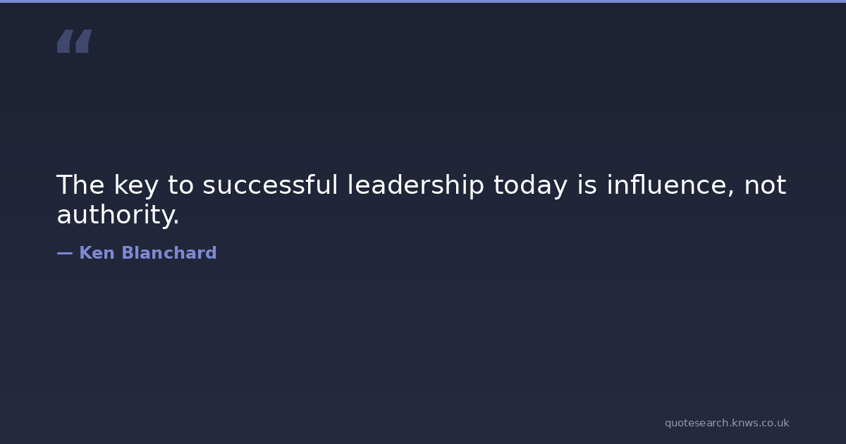 The key to successful leadership today is influence, not authority. Today Influence Successful Download Image Share on X Share on Facebook Copy Link