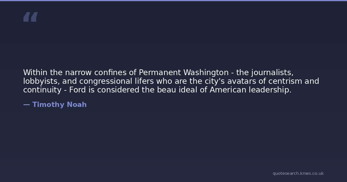 Within the narrow confines of Permanent Washington - the journalists, lobbyists, and congressional lifers who are the city's avatars of centrism and continuity - Ford is considered the beau ideal of American leadership.