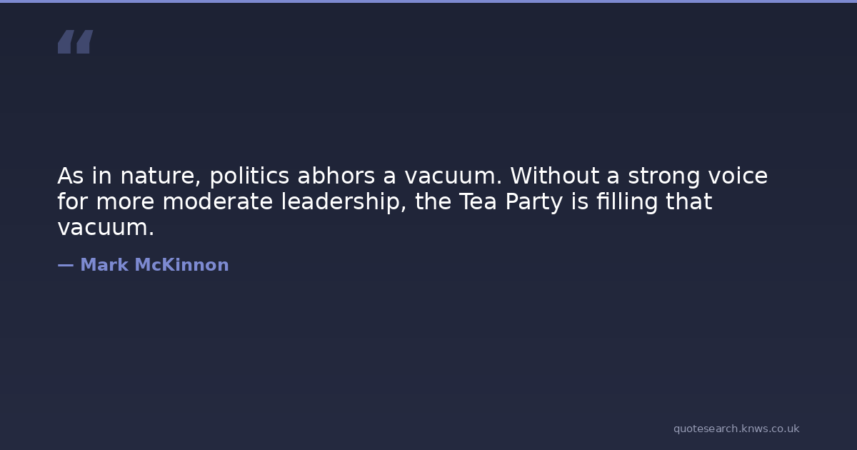 As in nature, politics abhors a vacuum. Without a strong voice for more moderate leadership, the Tea Party is filling that vacuum.