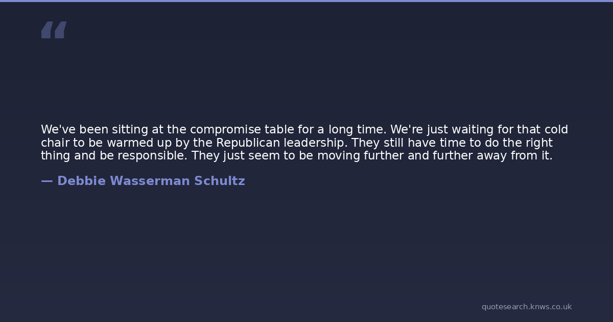 We've been sitting at the compromise table for a long time. We're just waiting for that cold chair to be warmed up by the Republican leadership. They still have time to do the right thing and be responsible. They just seem to be moving further and further away from it.