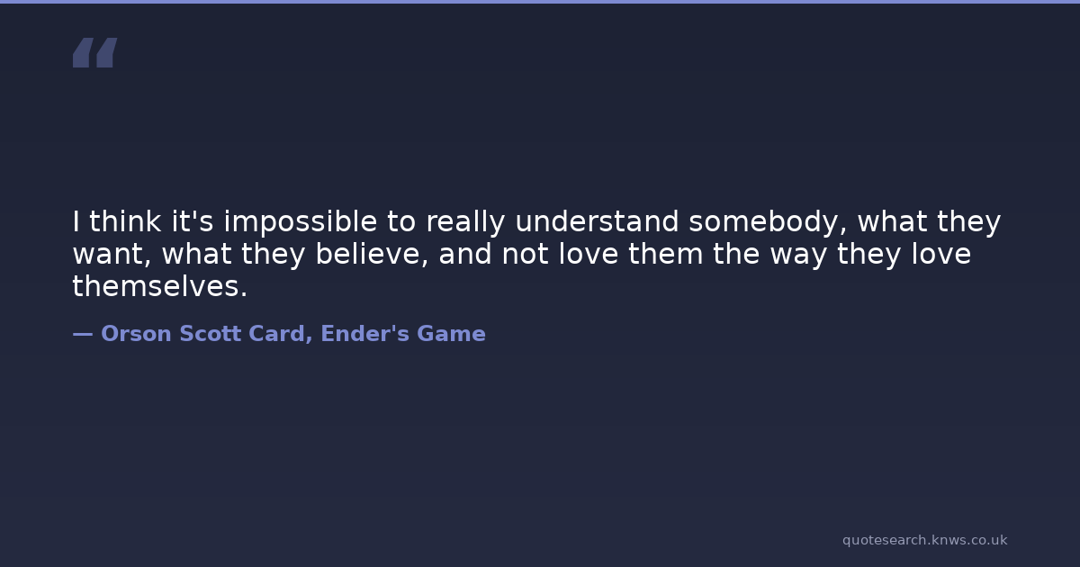 I think it's impossible to really understand somebody, what they want, what they believe, and not love them the way they love themselves.