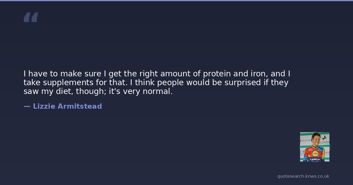 I have to make sure I get the right amount of protein and iron, and I take supplements for that. I think people would be surprised if they saw my diet, though; it's very normal.