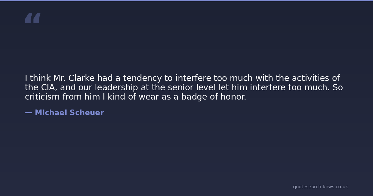 I think Mr. Clarke had a tendency to interfere too much with the activities of the CIA, and our leadership at the senior level let him interfere too much. So criticism from him I kind of wear as a badge of honor.