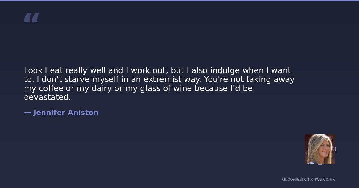Look I eat really well and I work out, but I also indulge when I want to. I don't starve myself in an extremist way. You're not taking away my coffee or my dairy or my glass of wine because I'd be devastated.