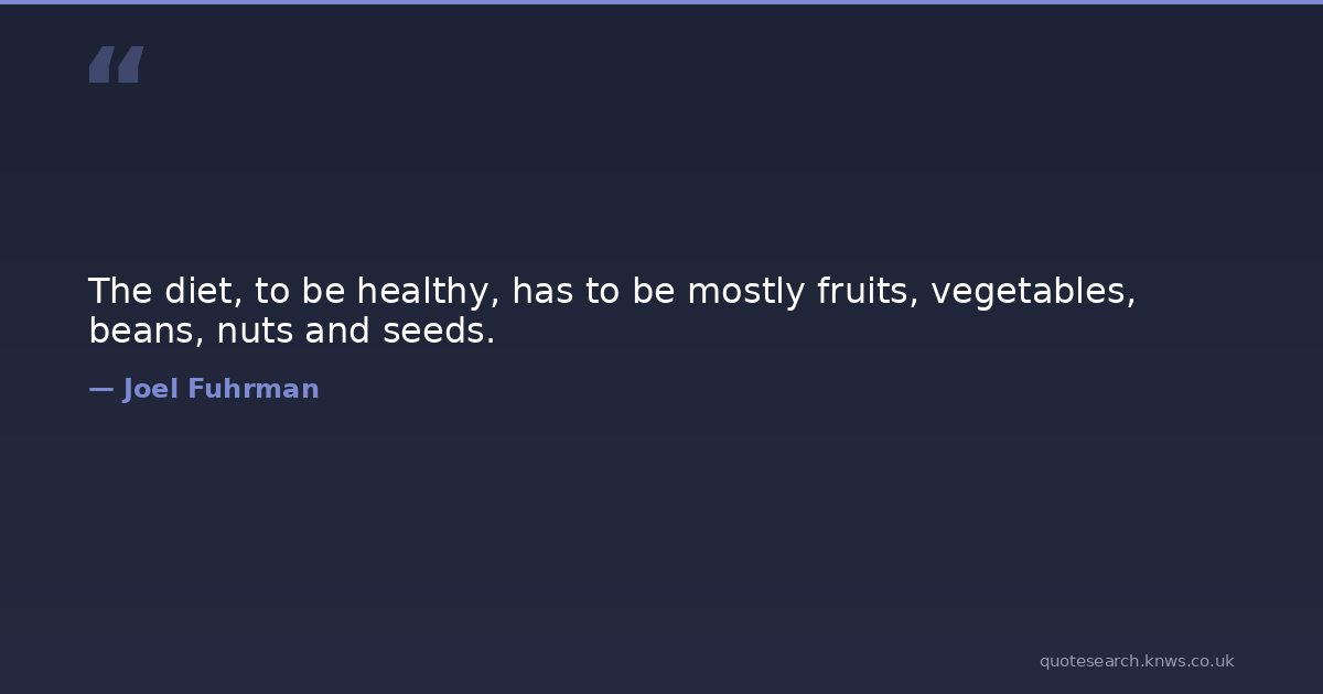 The diet, to be healthy, has to be mostly fruits, vegetables, beans, nuts and seeds.