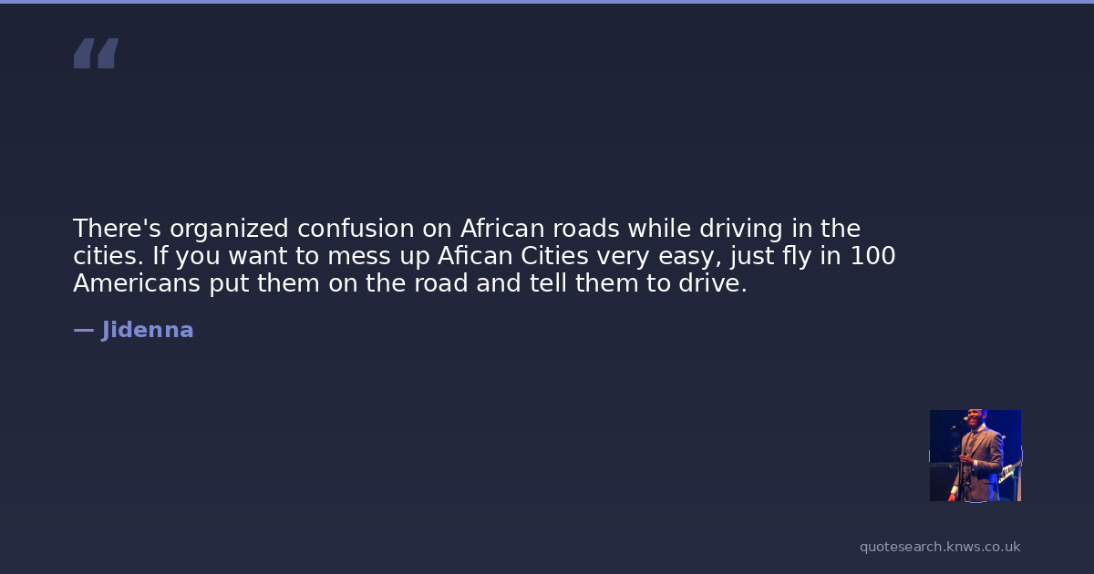 There's organized confusion on African roads while driving in the cities. If you want to mess up Afican Cities very easy, just fly in 100 Americans put them on the road and tell them to drive.