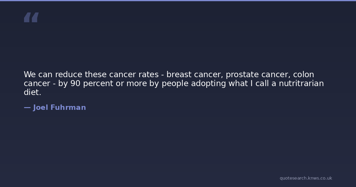 We can reduce these cancer rates - breast cancer, prostate cancer, colon cancer - by 90 percent or more by people adopting what I call a nutritrarian diet.
