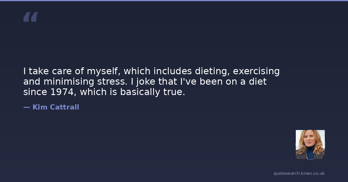 I take care of myself, which includes dieting, exercising and minimising stress. I joke that I've been on a diet since 1974, which is basically true.
