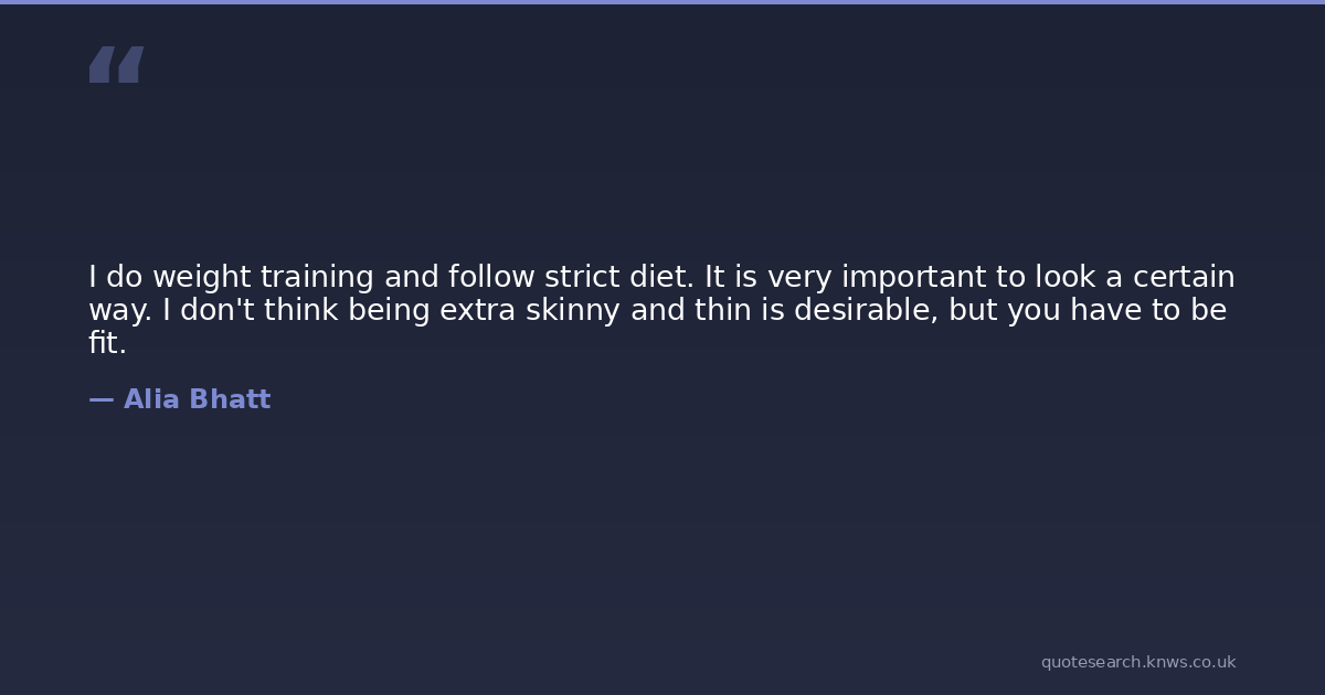 I do weight training and follow strict diet. It is very important to look a certain way. I don't think being extra skinny and thin is desirable, but you have to be fit.