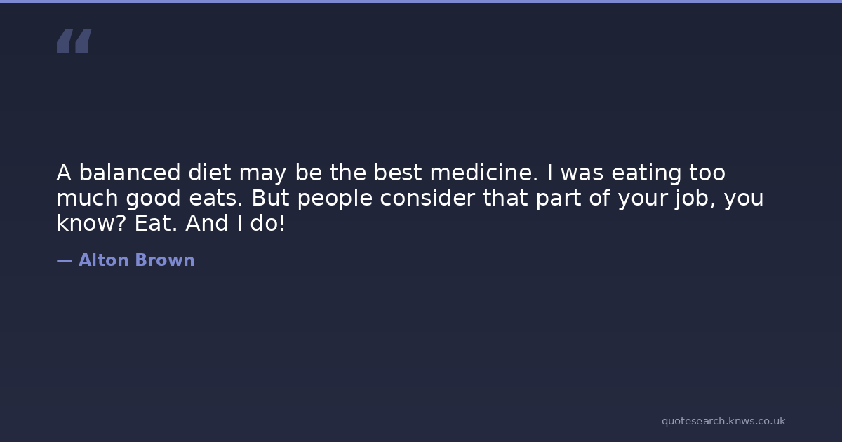 A balanced diet may be the best medicine. I was eating too much good eats. But people consider that part of your job, you know? Eat. And I do!