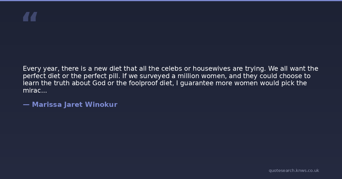 Every year, there is a new diet that all the celebs or housewives are trying. We all want the perfect diet or the perfect pill. If we surveyed a million women, and they could choose to learn the truth about God or the foolproof diet, I guarantee more women would pick the miracle diet over the miracle of life.