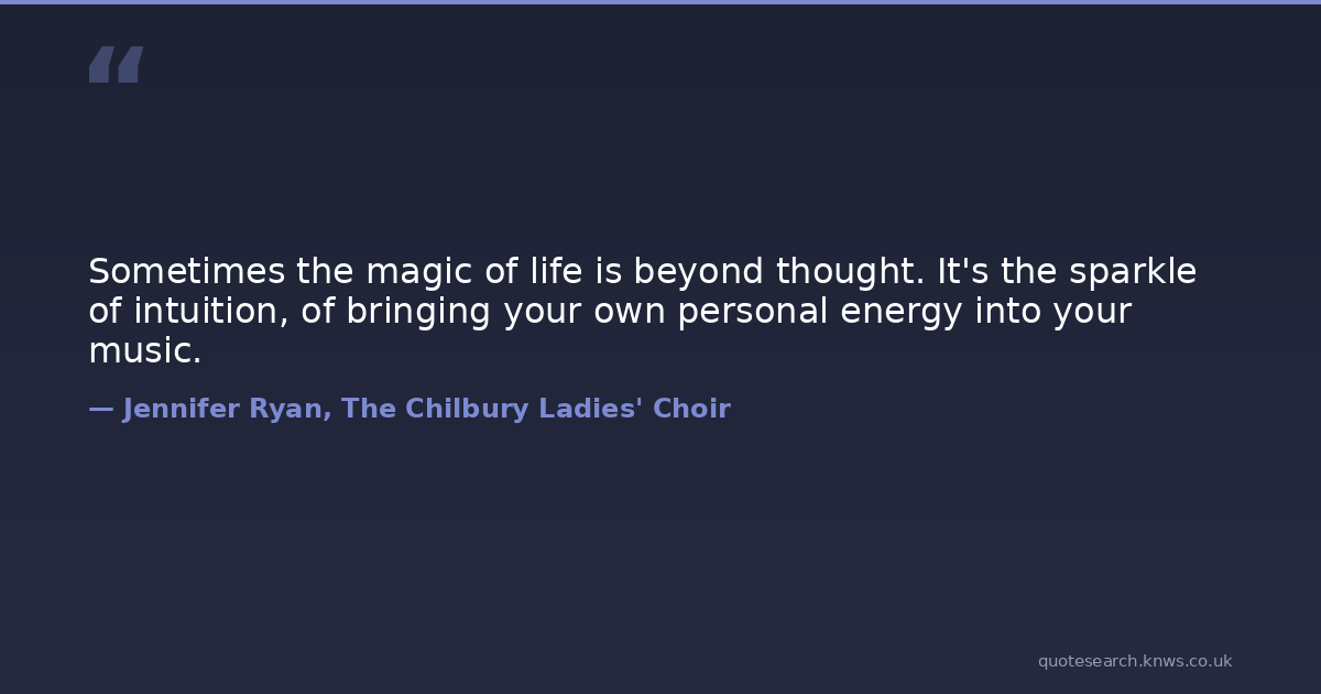 Sometimes the magic of life is beyond thought. It's the sparkle of intuition, of bringing your own personal energy into your music.