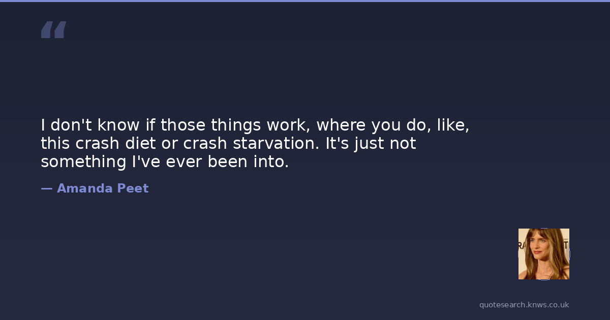 I don't know if those things work, where you do, like, this crash diet or crash starvation. It's just not something I've ever been into.