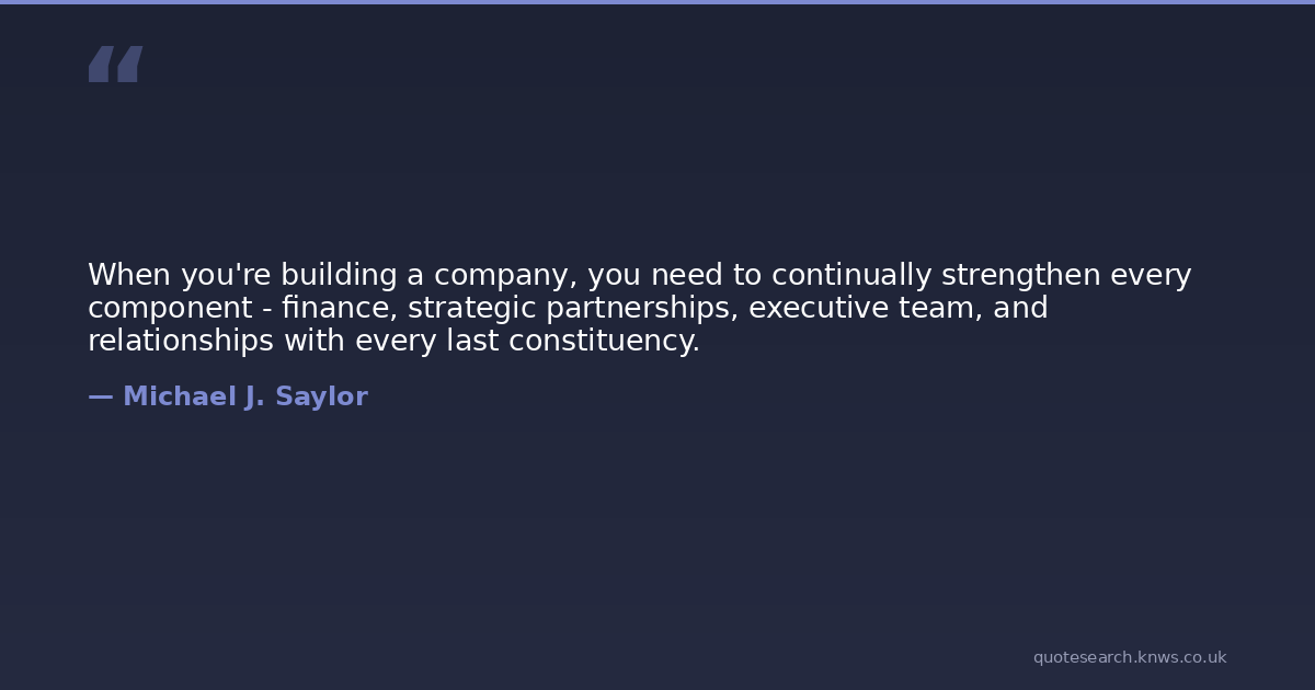 When you're building a company, you need to continually strengthen every component - finance, strategic partnerships, executive team, and relationships with every last constituency.