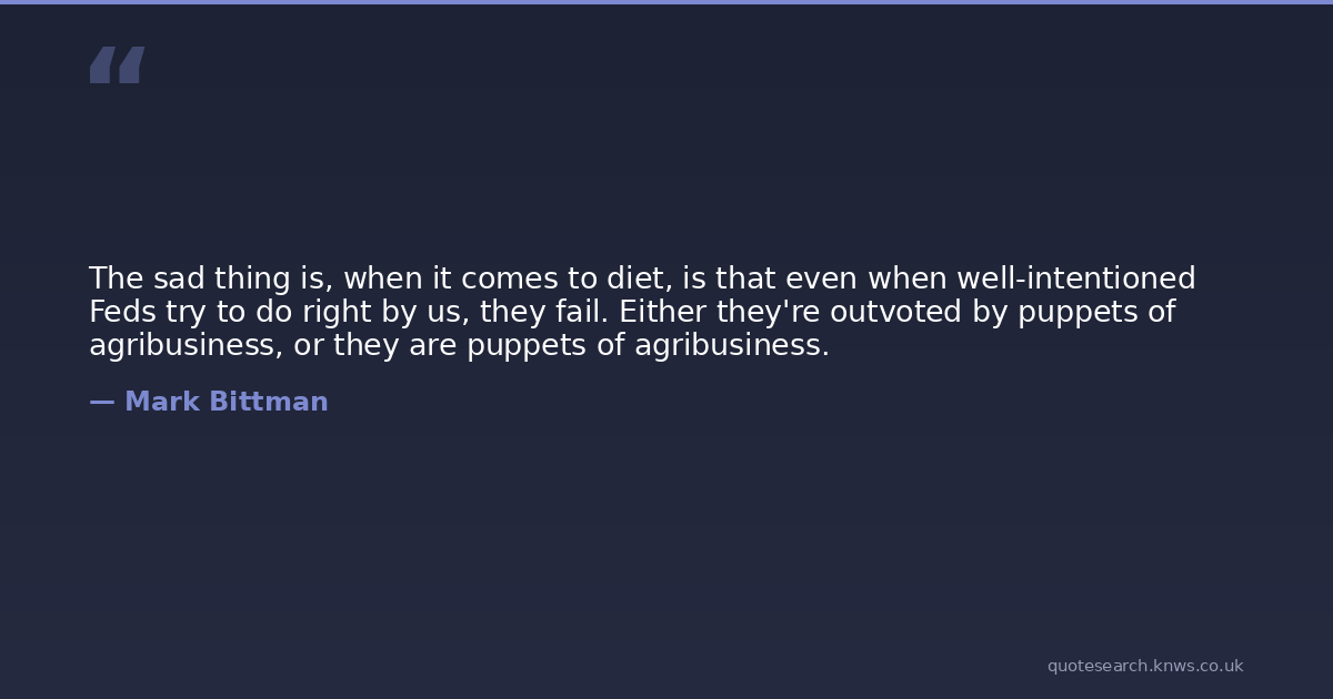 The sad thing is, when it comes to diet, is that even when well-intentioned Feds try to do right by us, they fail. Either they're outvoted by puppets of agribusiness, or they are puppets of agribusiness.