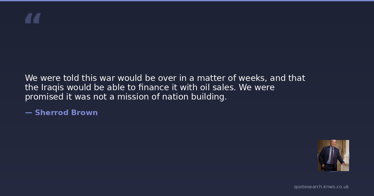 We were told this war would be over in a matter of weeks, and that the Iraqis would be able to finance it with oil sales. We were promised it was not a mission of nation building.