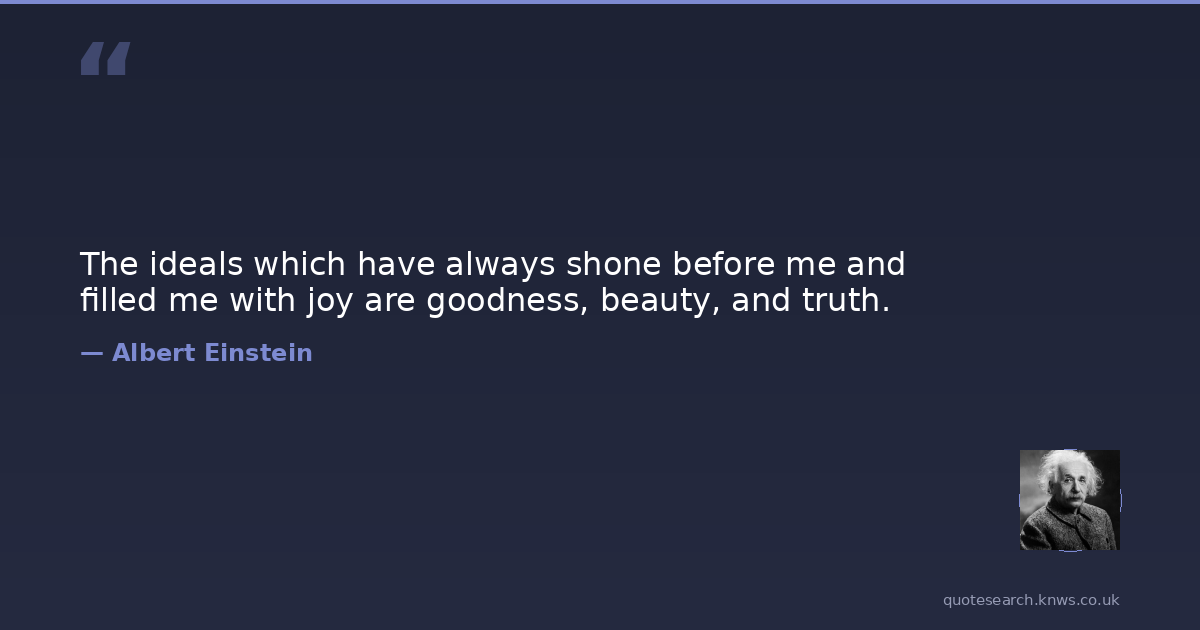 The ideals which have always shone before me and filled me with joy are goodness, beauty, and truth.