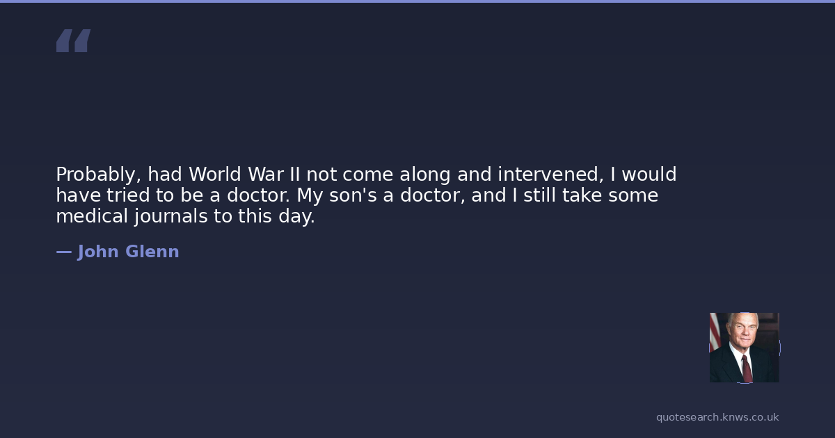 Probably, had World War II not come along and intervened, I would have tried to be a doctor. My son's a doctor, and I still take some medical journals to this day.