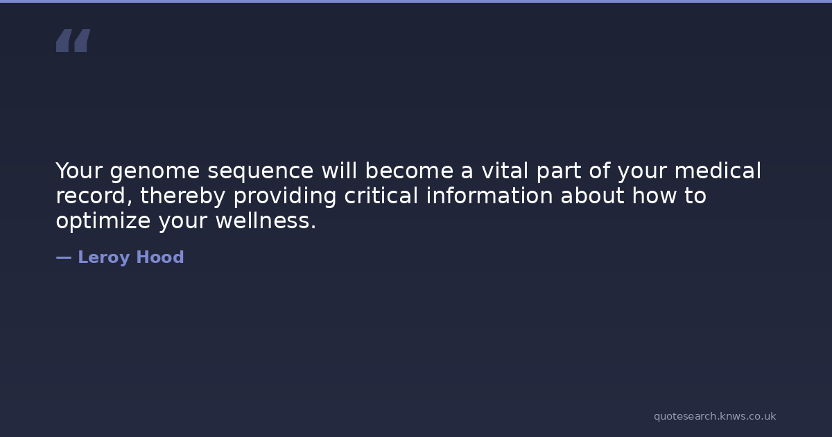 Your genome sequence will become a vital part of your medical record, thereby providing critical information about how to optimize your wellness.