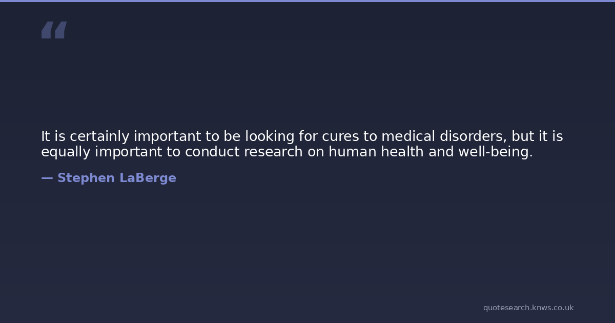 It is certainly important to be looking for cures to medical disorders, but it is equally important to conduct research on human health and well-being.