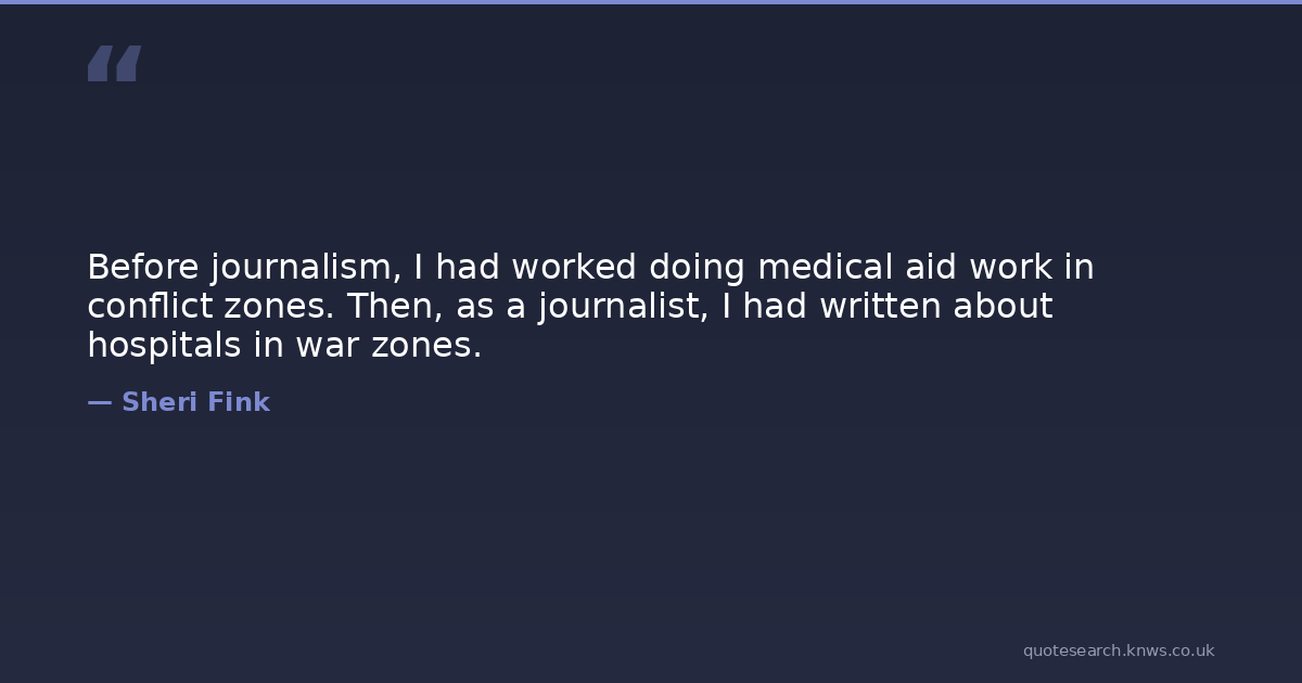 Before journalism, I had worked doing medical aid work in conflict zones. Then, as a journalist, I had written about hospitals in war zones.