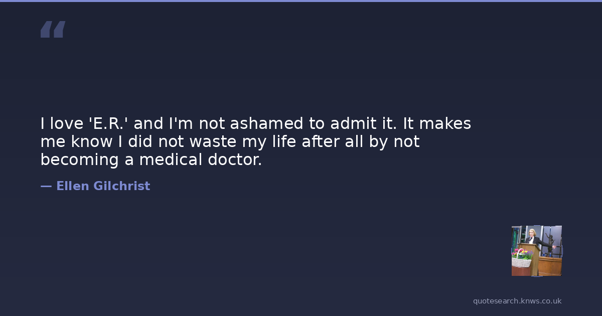 I love 'E.R.' and I'm not ashamed to admit it. It makes me know I did not waste my life after all by not becoming a medical doctor.