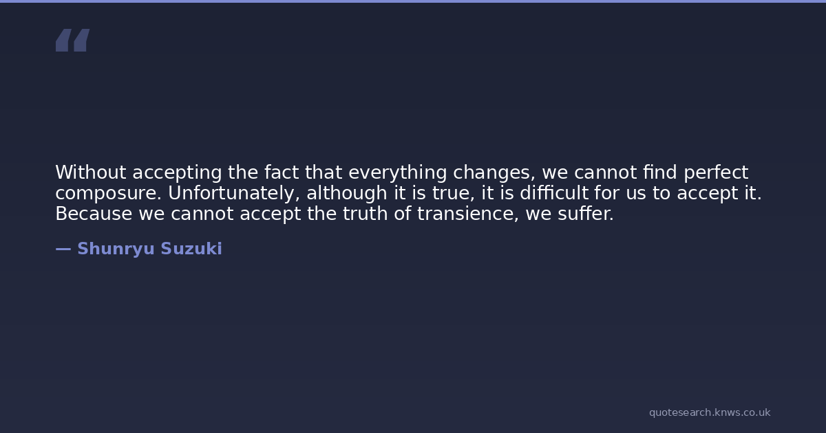 Without accepting the fact that everything changes, we cannot find perfect composure. Unfortunately, although it is true, it is difficult for us to accept it. Because we cannot accept the truth of transience, we suffer.