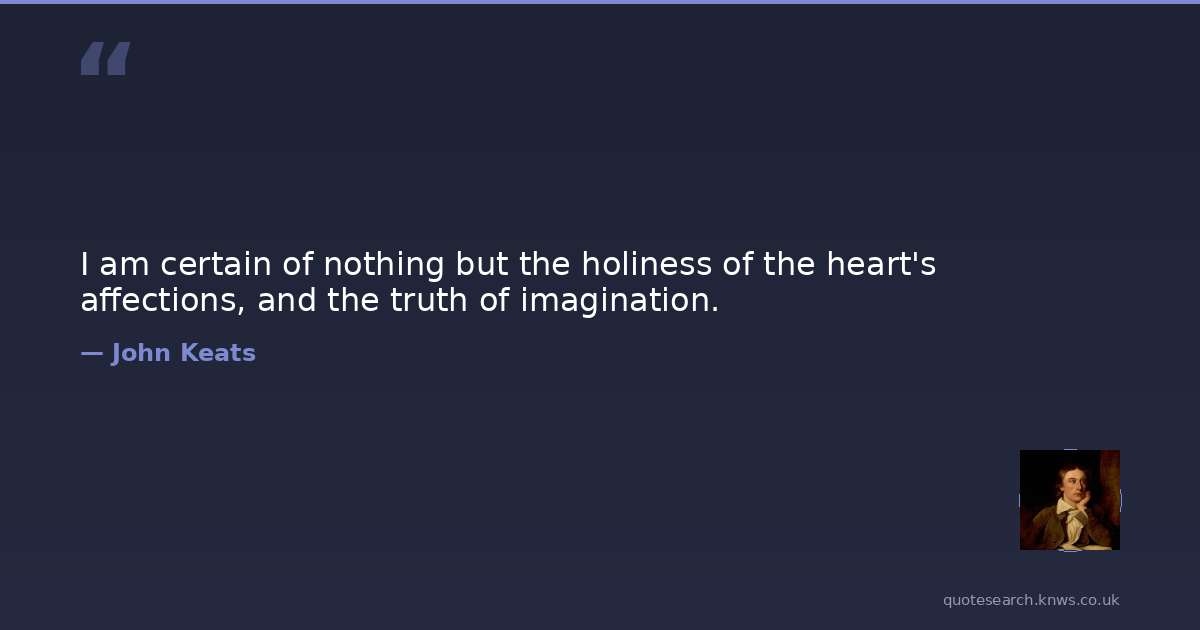 I am certain of nothing but the holiness of the heart's affections, and the truth of imagination.