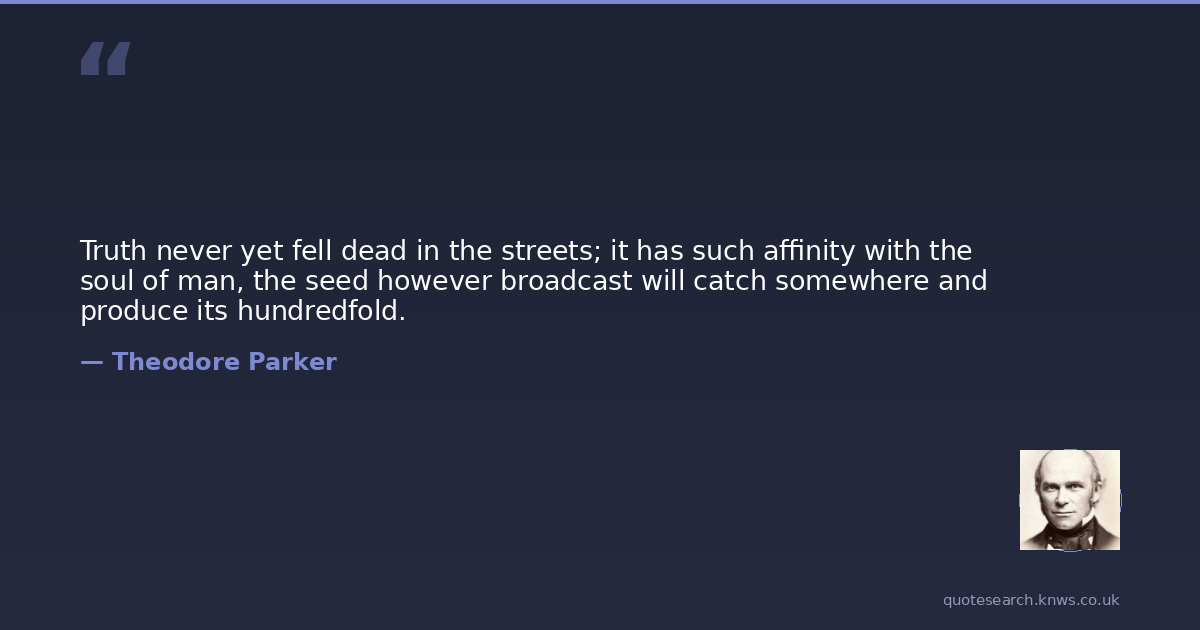 Truth never yet fell dead in the streets; it has such affinity with the soul of man, the seed however broadcast will catch somewhere and produce its hundredfold.