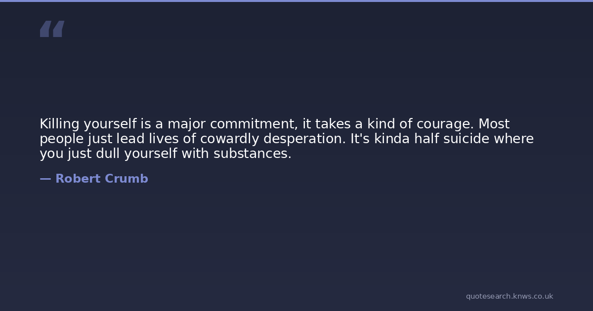 Killing yourself is a major commitment, it takes a kind of courage. Most people just lead lives of cowardly desperation. It's kinda half suicide where you just dull yourself with substances.